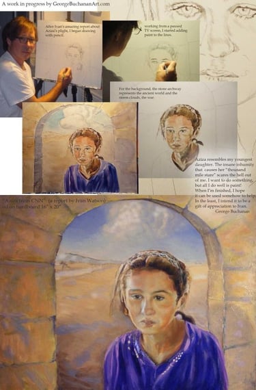 After watching the report in the news about the Yazidi's being chased to the top of a mountain by Isis, I was moved by the story of Aziza and her family. I'm painting Aziza's portrait from a paused tv screen. I'm truly outraged by Isis and their hateful perversions. I pray Aziza and her family stay safe.